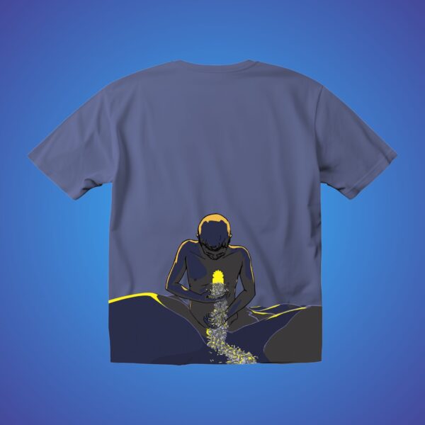 A minimal yet powerful design inspired by Bayaan’s emotional depth. Featuring a subtle Bayaan mark on the front and a striking back illustration symbolizing the heart as an endless river of feeling. Crafted in a muted blue-grey tone, this limited-edition tee is made for those who truly connect with Bayaan’s music.